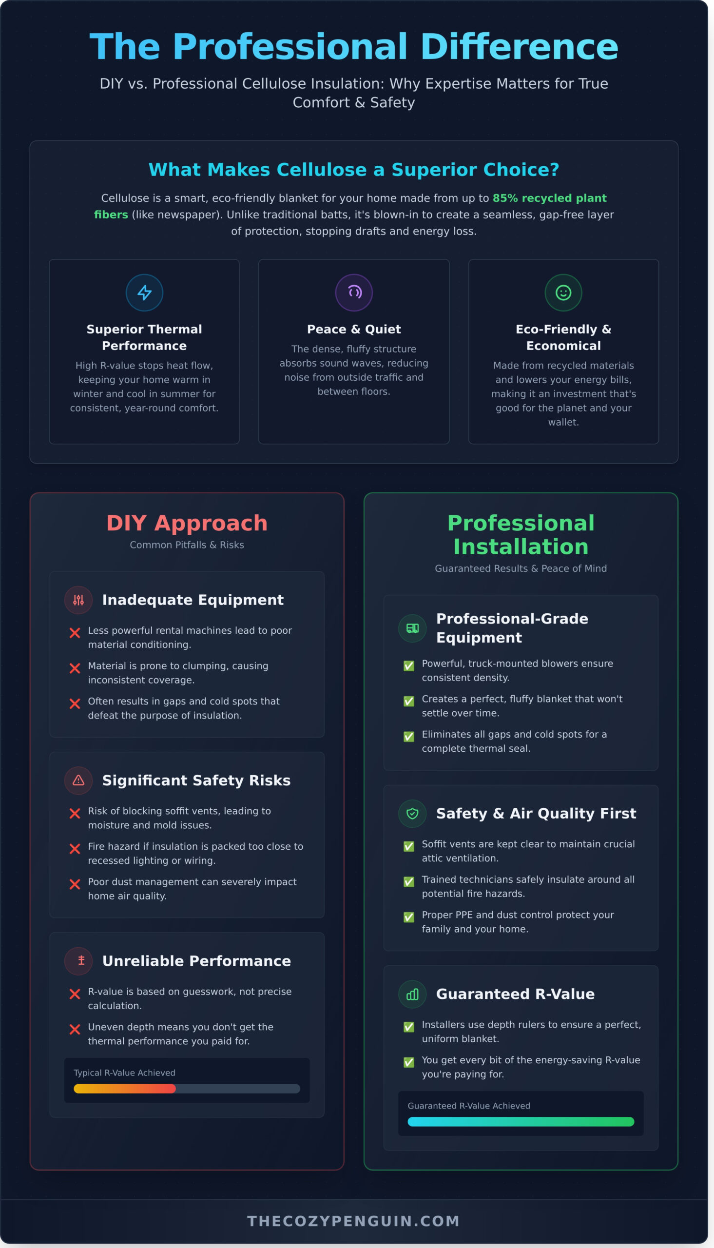 Finally, trust your gut. Is the team friendly, respectful, and communicative? The best cellulose insulation installers near me see their work as more than just a technical job-their mission is to make your home a more comfortable, peaceful, and efficient place for your family. They should listen to your questions, provide a clear, no-pressure quote, and make you feel valued. At The Cozy Penguin, we believe that creating a cozy home starts with a comfortable and honest conversation.